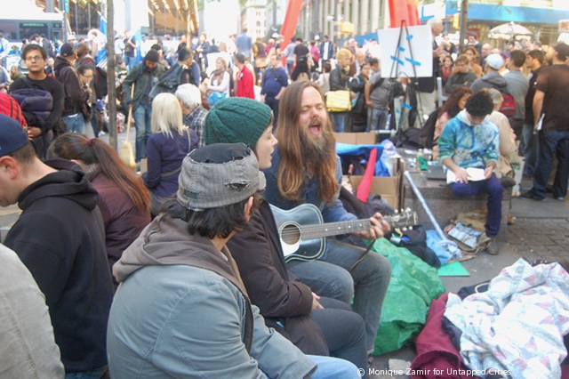 We have a president who tells us to do the right thing, to go to school, to get a better life, but I’m not getting a better life. I am a new college graduate and I have $50,000 of college debt built up while studying business management at Berkeley. I can’t find a job to pay it off … Look around us, Chase, Citigroup, Goldman Sachs — they got us in this position in the first place. The banks get a bailout but what about us? Where’s our bailout? … A lot of my friends are here. We have good degrees, we have worked hard, but now what?