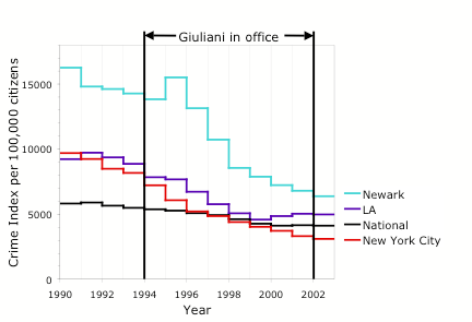 The problem, as Levitt pointed out, was that other cities which had not implemented the same policies had recorded similar drops in crime, and that the drops had generally commenced in around 1991, three years before Guiliani’s first election as mayor. Using a number of statistical proofs, Levitt and Donohue have demonstrated that the legalization of abortion in 1973 following Roe v. Wade, had by 1991, eighteen years later, led to a situation in which the children of unwanted pregnancies—overwhelmingly from lower socio-economic or otherwise disadvantaged backgrounds, and statistically more likely to commit crime, and who would otherwise have reached majority in that year—had in fact never been born. The clinching argument was the fact that the drop in crime, which occurred across all 48 contiguous states, occurred earlier in the same five states which had legalized abortion in 1970, three years ahead of Roe.