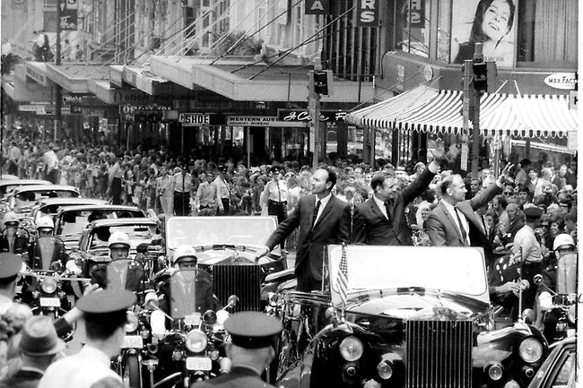 The link above has this photo, which I’ve never seen before, taken of the Apollo 11 crew’s visit to Sydney in 1969, as part of their 24-nation “Giant Leap” tour. I’m in the crowd—so this picture is like gold to me:
