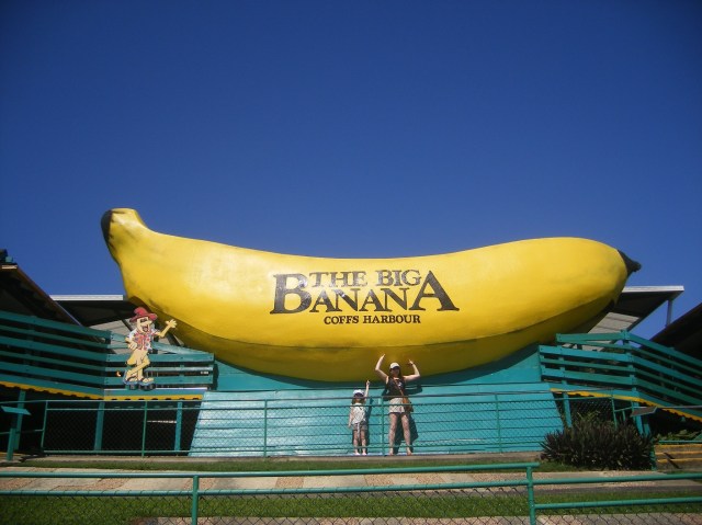 I finish driving today at the tourist resort town of Coffs Harbour, about 540 km (340 miles) north of Sydney, and about halfway to Brisbane. I was going to show you a photo of Coffs’ most famous landmark (erected to commemorate the district’s major agricultural product), but once again the evening light failed my small camera, so here’s a stock photo: