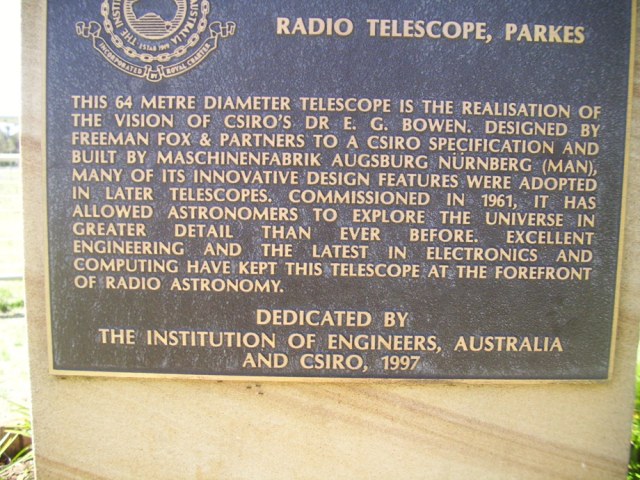 Parkes, named after Australia’s “Father of Federation”, is my next stop. It’s mainly known as the home of the Parkes Observatory, home of the largest radio telescope dish in the Southern Hemisphere. It’s a few miles out of the way, but as I haven’t visited it for many years, I thought I’d drop by.