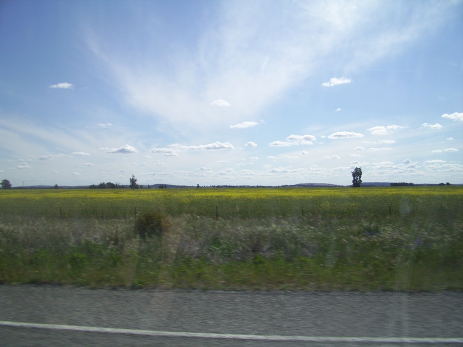 Canola has also become a major crop over the past few years, and the canola fields down here stretch out from the highway, often all the way to the horizon.